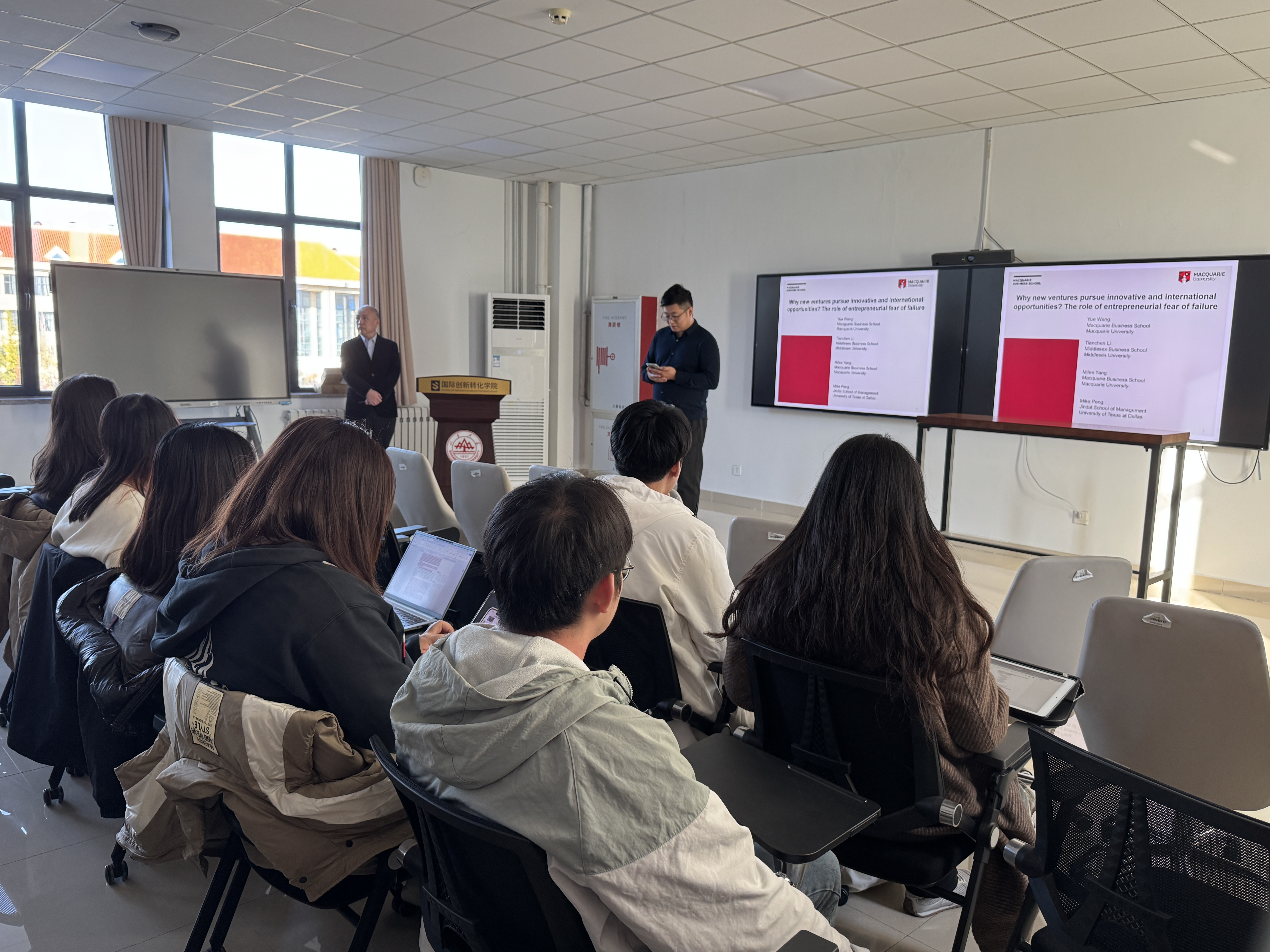 11月3日,山东大学国际创新转化学院在青岛校区会文南楼B座多功能厅成功举办了题为“New Ventures’ Preference for Innovative Opportunities and Its Impact on the Degree of Internationalization: The role of entrepreneurial fear of failure”的学术讲座。讲座特邀澳大利亚麦考瑞大学管理学院王悦副教授担任主讲。