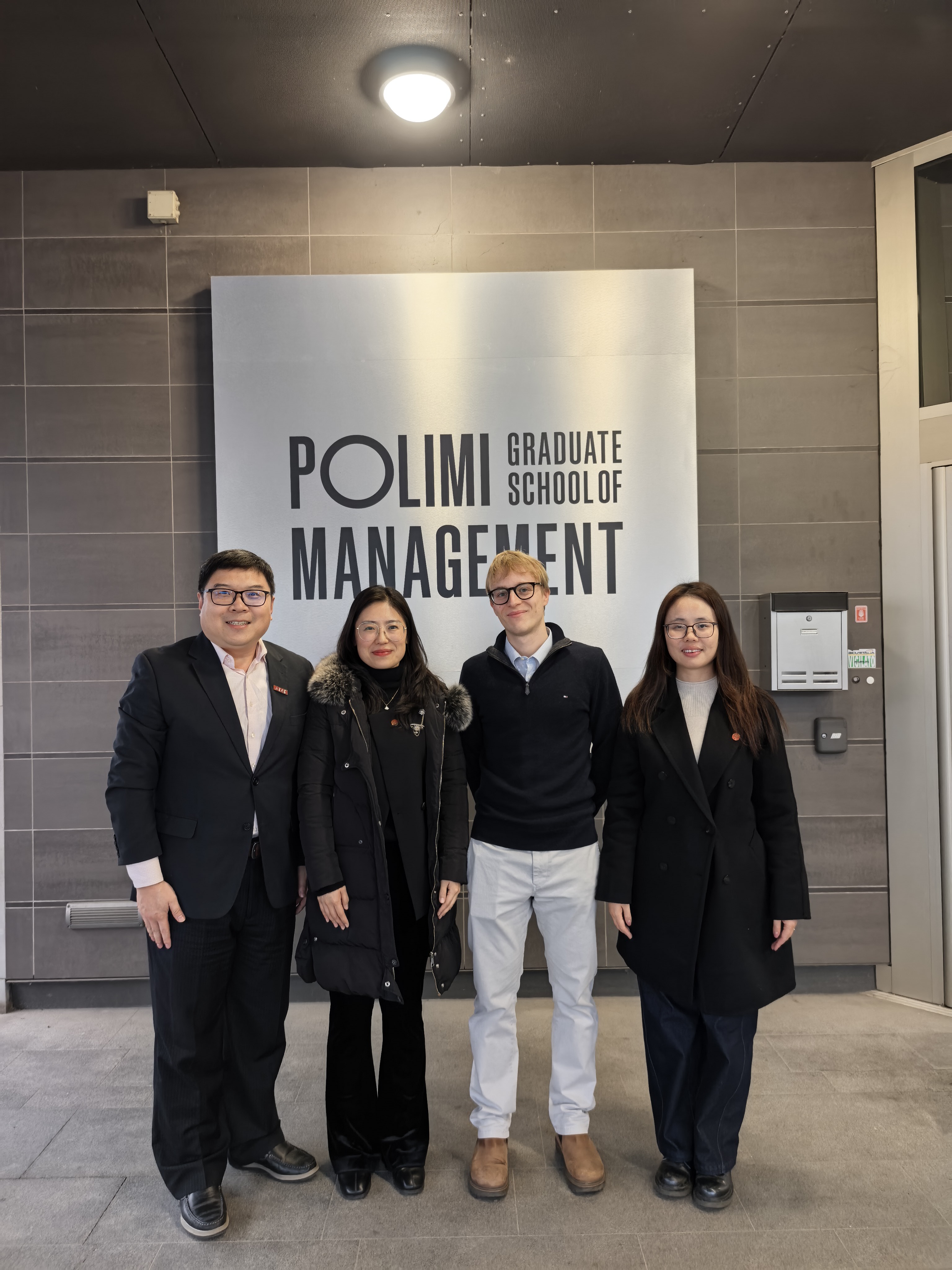 在意大利期间,学院访问米兰理工大学商学院。该院分管国际化和质量建设的副院长Sergio Terzi教授、亚太合作区负责人Mattia Massimo Sosio主管会见代表团。双方分别介绍了各自学院的发展情况,围绕师资互访、学术交流、课程建设及学生交流等方面达成多项共识,并表示将以此次会谈为契机,推动两院在技术经济及管理、创新生态系统建设、国际创新转化学术论坛等领域开展务实合作,共同培养“未来管理者”,服务区域经济社会发展。